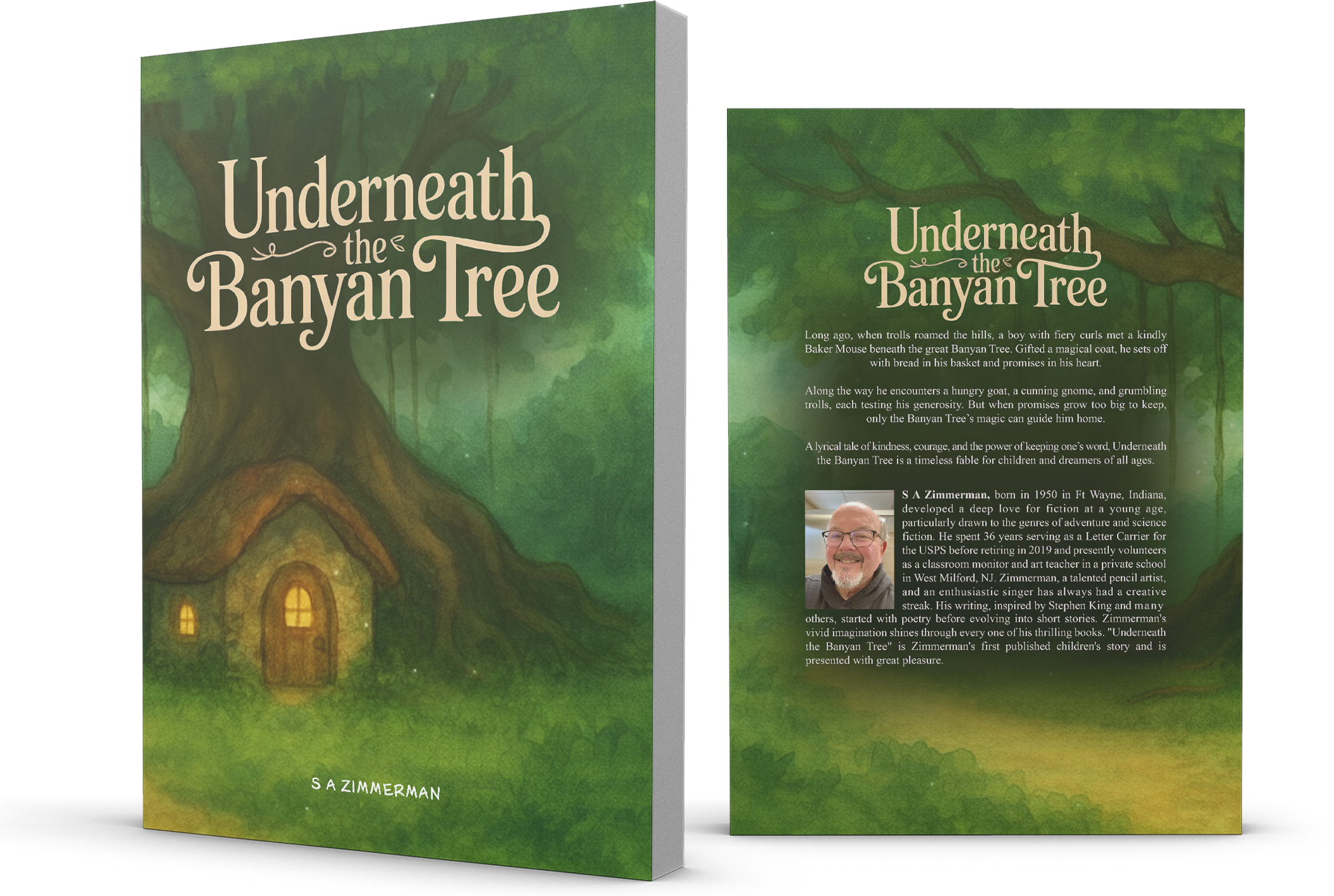 Zimmerman presently volunteers as a classroom monitor and art teacher in a private school in West Milford, NJ. A talented pencil artist and an enthusiastic singer, his writing, inspired by Stephen King and many others, started with poetry before evolving into short stories. Underneath the Banyan Tree is his first published children’s story.